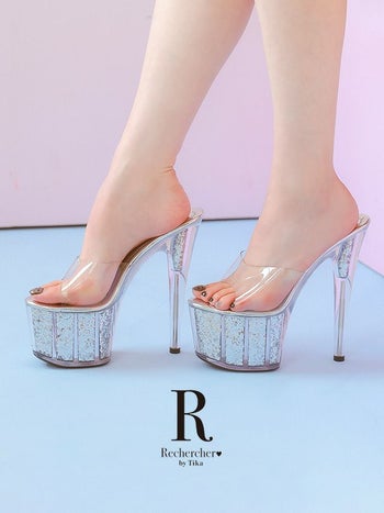 厚底部分にサンダルの底に合わせた同色のラメが入っているクリアサンダル