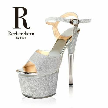 4. 【Rechercher/ルシェルシェ】キャバヒール グリッター 厚底 ストラップデザイン ラメ サンダル[シルバー][22.5cm~25.0cm][17cmヒール]