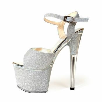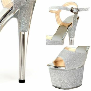 17cmヒール☆キラキラのグリッターラメが可愛いキャバドレスにピッタリなパンプス♪ 【Rechercher/ルシェルシェ】キャバヒール グリッター 厚底 ストラップデザイン ラメ サンダル[シルバー][22.5cm~25.0cm][17cmヒール]