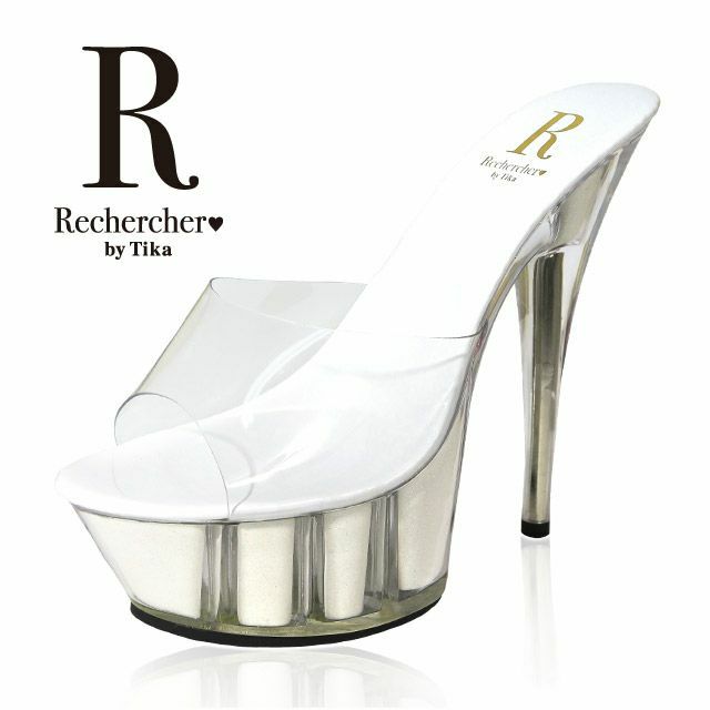 4. 【Rechercher/ルシェルシェ】キャバヒール ラメストーム 厚底 クリアサンダル[ホワイト][22.5cm~25.0cm][15cmヒール]