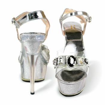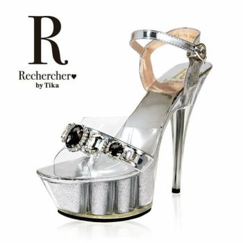 5. 【Rechercher/ルシェルシェ】キャバヒール ランダムビジューデザイン クリアサンダル[シルバー][22.5cm~25.0cm][15cmヒール]