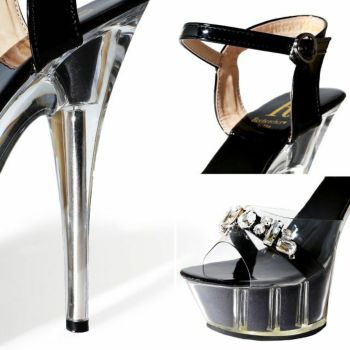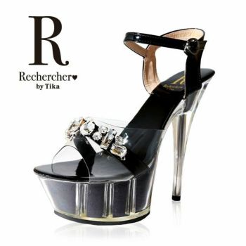 4. 【Rechercher/ルシェルシェ】キャバヒール ストーデザイン クリアサンダル[ブラック][22.5cm~25.0cm][15cmヒール]