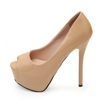 【Rechercher/ルシェルシェ】キャバヒール ワンカラー エナメル オープントゥ パンプス[ベージュ][14.5cmヒール]