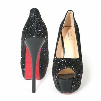 5. 【Rechercher/ルシェルシェ】キャバヒール グリッター オープントゥ パンプス[ブラック][22.5cm~25.0cm][14cmヒール]