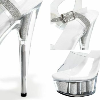 5. 【Rechercher/ルシェルシェ】キャバヒール ラメストーム 厚底 ストラップ付 クリアサンダル[シルバー][22.5cm~25.0cm][15cmヒール]