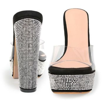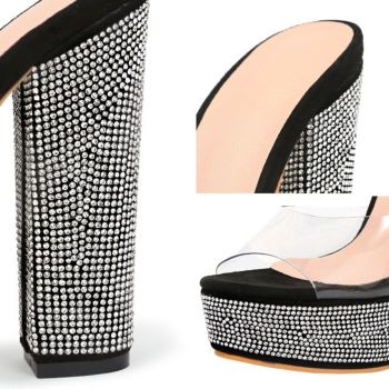 スエードストーンソール厚底クリアサンダル [ブラック][22.5cm~25.0cm][14cmヒール]