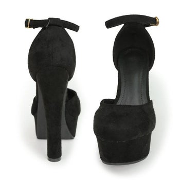 シンプル スエード アンクルストラップ付き ハイヒールパンプス
