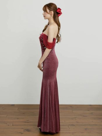 4. 【Angel R/エンジェルアール】2way オフショルダー 肩あき フラワーレース セクシー ビジュー ラメ マーメイドロングドレス (AR25863)
