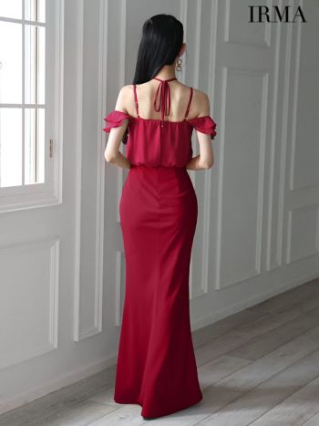 4. 【IRMA/イルマ】シフォン スリット クロスデザイン キャミソール 肩あき タイトロングドレス (55089)
