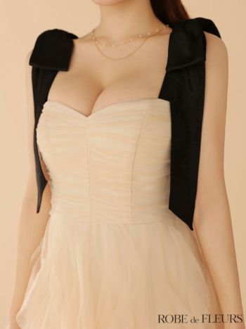 4. 予約商品【2月下旬入荷予定】【ROBEdeFLEURS/ローブドフルール】ノースリーブ チュール リボンショルダー ボリューム Aラインロングドレス (fm3463)