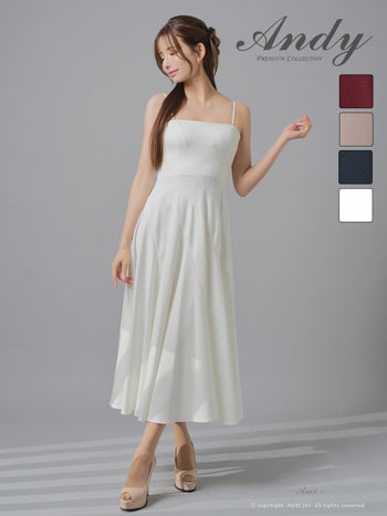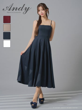 XSあり!同伴にもピッタリ☆ 【Andy/アンディ】キャミソール 2way ベアトップ ワンカラー プリーツ ミモレ丈 Aラインロングドレス(anon3025)