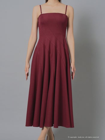 4. 【Andy/アンディ】キャミソール 2way ベアトップ ワンカラー プリーツ ミモレ丈 Aラインロングドレス(anon3025)