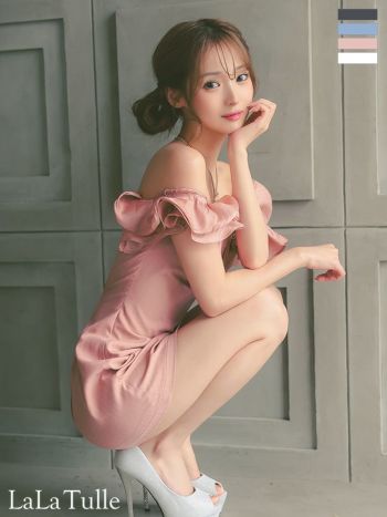 キャバドレス Angel R エンジェルアール バストチャーム ビジュー 半袖 肩あき ガーリー フリルスリーブ フレアミニドレス