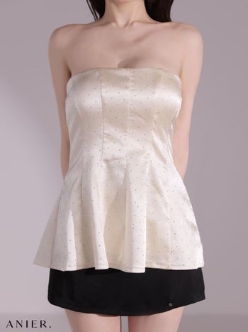 3. 予約商品【5月上旬入荷予定】【ANIER./アニエル】サテン ペプラム バックリボン セットアップ ベアトップ ビジュー タイトミニドレス (anier4069)