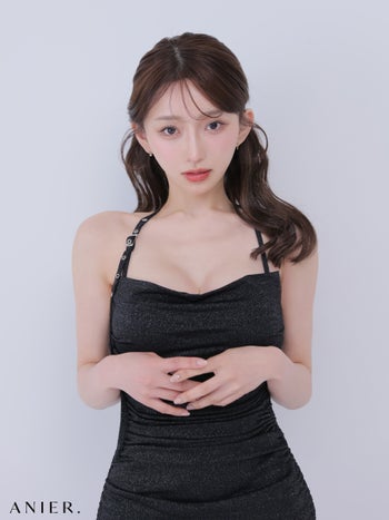 キャバドレス ANIER. アニエル ホルターネック ドレープ サイドレースアップ ベルトデザイン シンプル バックオープン タイトミニドレス