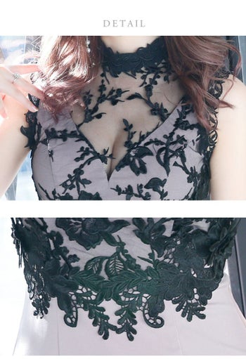 大人かわいいフェミニンな高級キャバ ワンピース♪ 【DEA.by ROBE de FLEURS/ディア】刺繍レース切替×ロング タイトミニドレス[3color]
