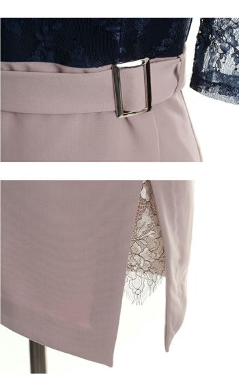 3. 【DEA.by ROBE de FLEURS/ディア】レーススリーブ 袖あり タイトミニドレス[ホワイト×ディープパープル][1371]