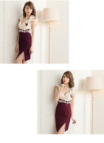 大人かわいいフェミニンな高級キャバ ワンピース♪ 【DEA.by ROBE de FLEURS/ディア】スカーフデザイン×バイカラー切替 タイトミニドレス[Lあり][1824]