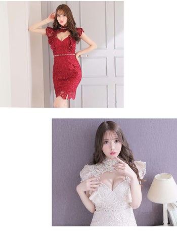 大人かわいいフェミニンな高級キャバ ワンピース♪ 【DEA.by ROBE de FLEURS/ディア】パール付きフリル 総レース タイトミニドレス[Lあり][2396]