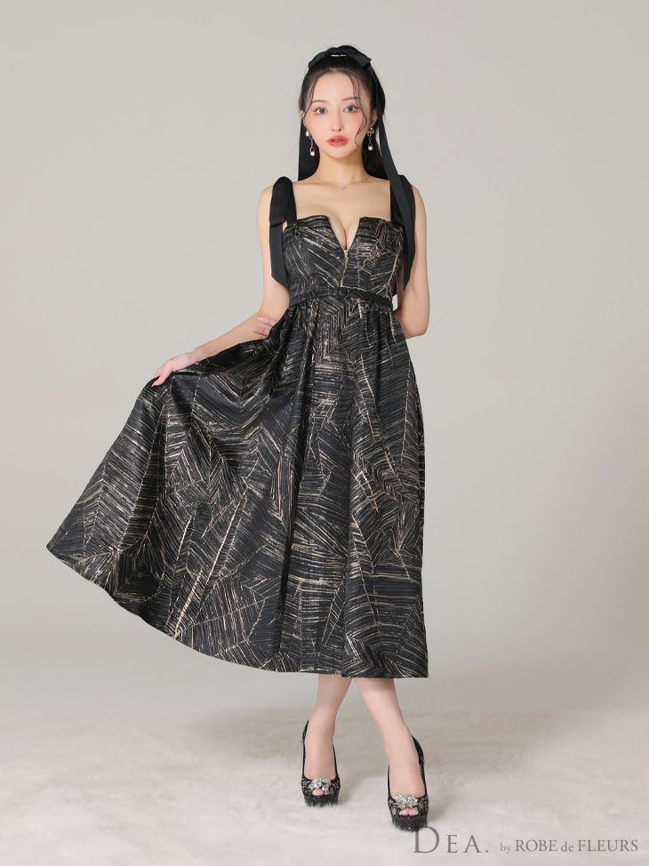 4. 【DEA.by ROBE de FLEURS/ディア】エレガント オープンバスト ジップデザイン ノースリーブ ジャガード サテンリボン Aラインロングドレス (DE3268)