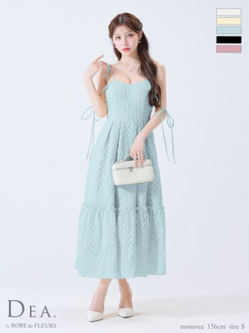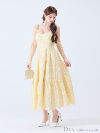 Lあり!シフォンが可愛い★ 【DEA.by ROBE de FLEURS/ディア】シフォン オーガンジー チェック柄 エレガント オープンバスト キャミソール リボン Aラインロングドレス(DE3291)