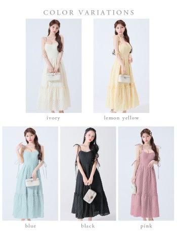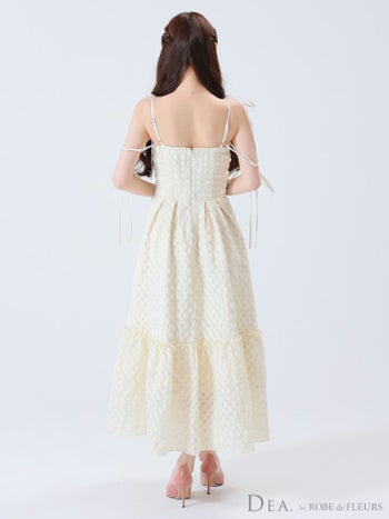 4. 【DEA.by ROBE de FLEURS/ディア】シフォン オーガンジー チェック柄 エレガント オープンバスト キャミソール リボン Aラインロングドレス(DE3291)