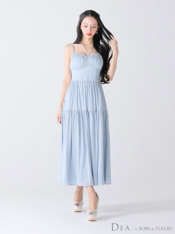 Lあり!バストを美しく見せてくれる★ 【DEA.by ROBE de FLEURS/ディア】エレガント オープンバスト ホルターネック リボン キャミソール ウエストベルト ラメシフォン Aラインロングドレス (DE3374)