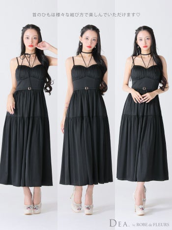 3. 【DEA.by ROBE de FLEURS/ディア】リボン キャミソール ウエストベルト ラメシフォン エレガント オープンバスト ホルターネック Aラインロングドレス (DE3374)