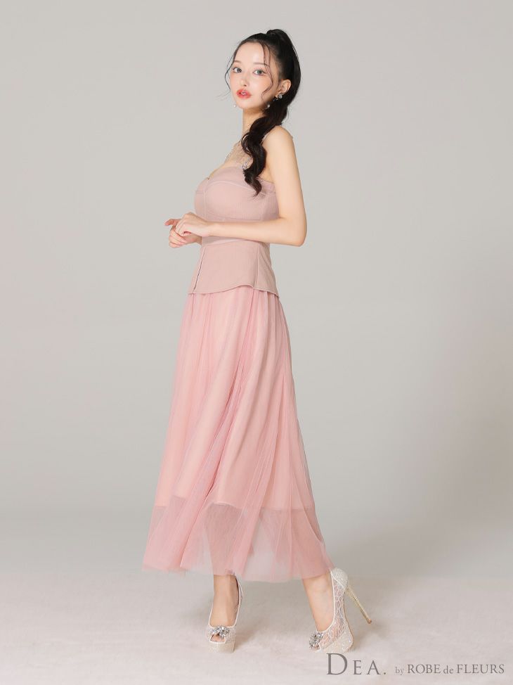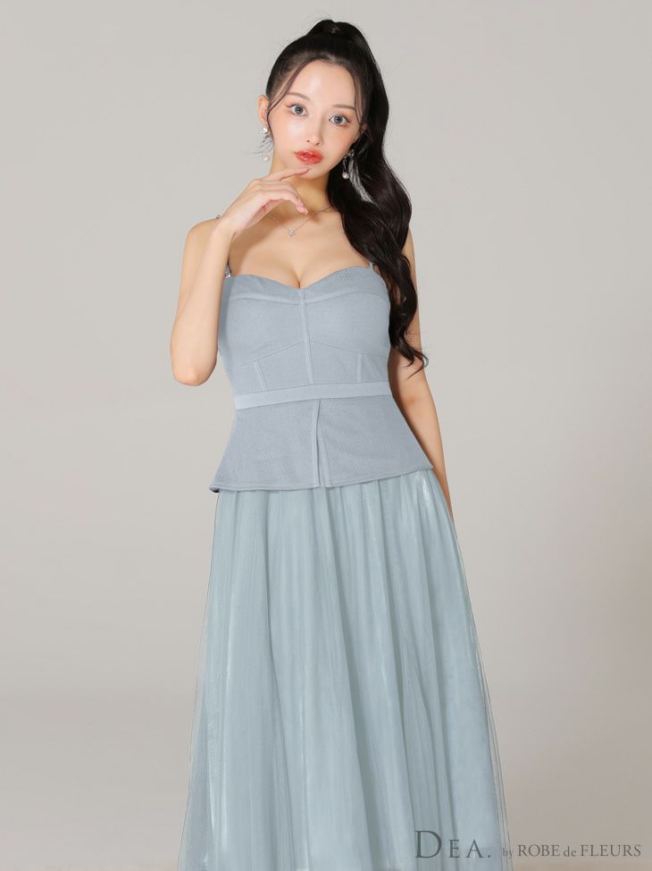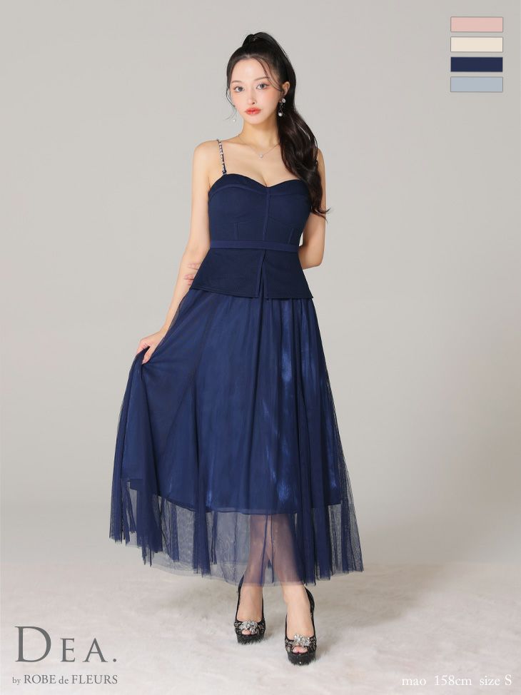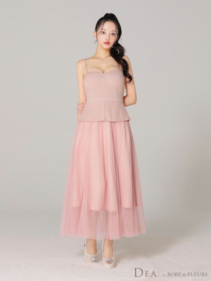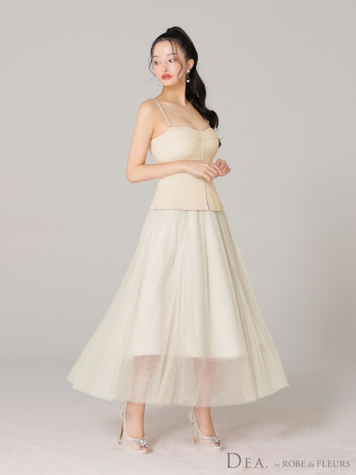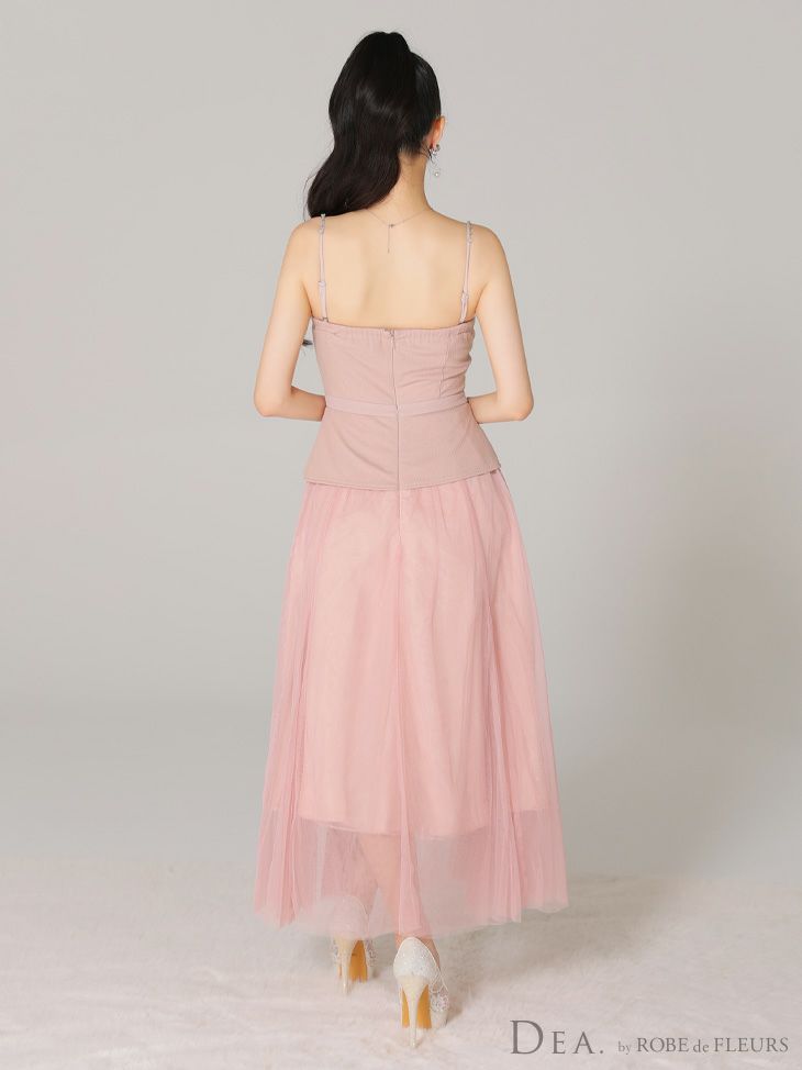 4. 【DEA.by ROBE de FLEURS/ディア】オープンバスト キャミソール ペプラム チュール エレガント Aラインロングドレス (DE3534)