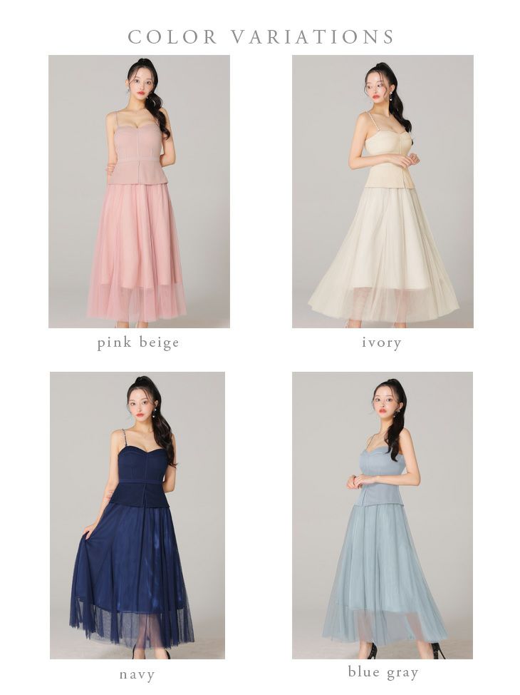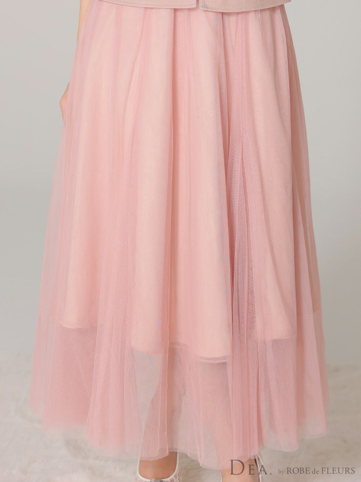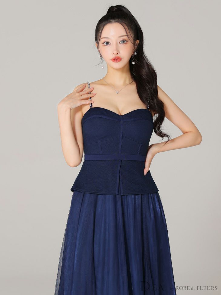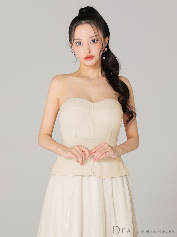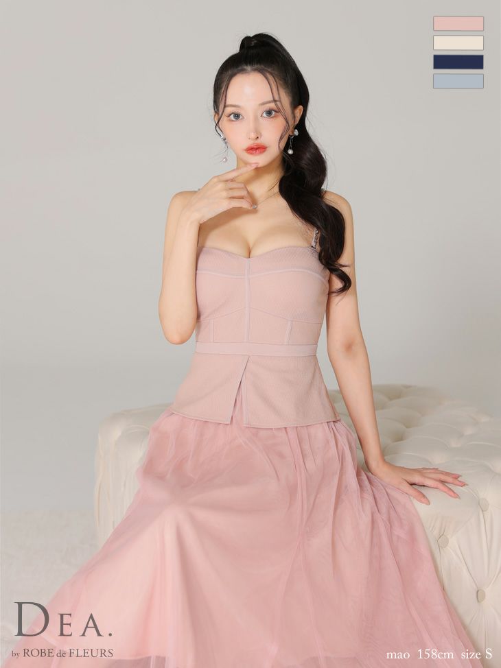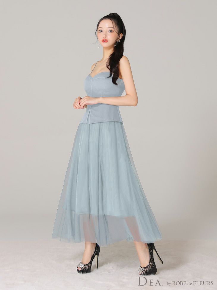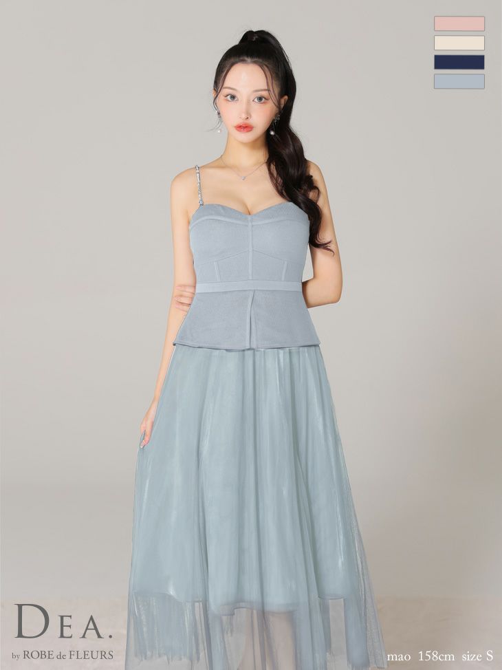 4. 【DEA.by ROBE de FLEURS/ディア】オープンバスト キャミソール ペプラム チュール エレガント Aラインロングドレス (DE3534)