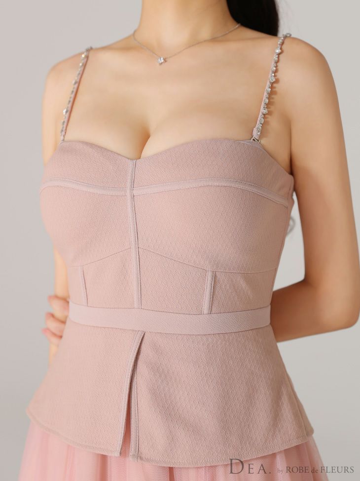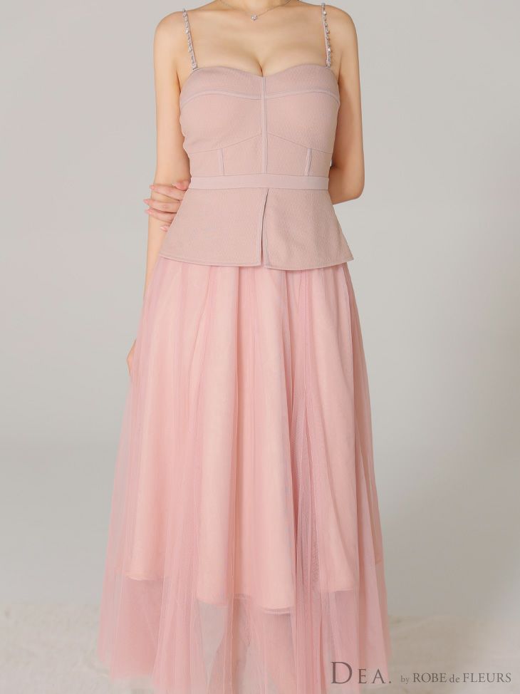 Lあり!肩紐取り外し可能★ 【DEA.by ROBE de FLEURS/ディア】オープンバスト キャミソール ペプラム チュール エレガント Aラインロングドレス (DE3534)