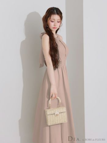 4. 予約商品【2月下旬入荷予定】【DEA.by ROBE de FLEURS/ディア】ホルターネック ジップデザイン スリット バックリボン フレアロングドレス (DE3935)
