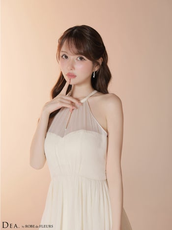 キャバドレス DEA. ROBE de FLEURS ディア ローブドフルール ホルターネック ティアードスカート シフォン キーホールカット バックオープン リボン ラメ Aラインロングドレス
