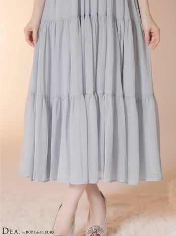 4. 【DEA.by ROBE de FLEURS/ディア】ホルターネック ティアードスカート シフォン キーホールカット バックオープン リボン ラメ Aラインロングドレス(DE4145)