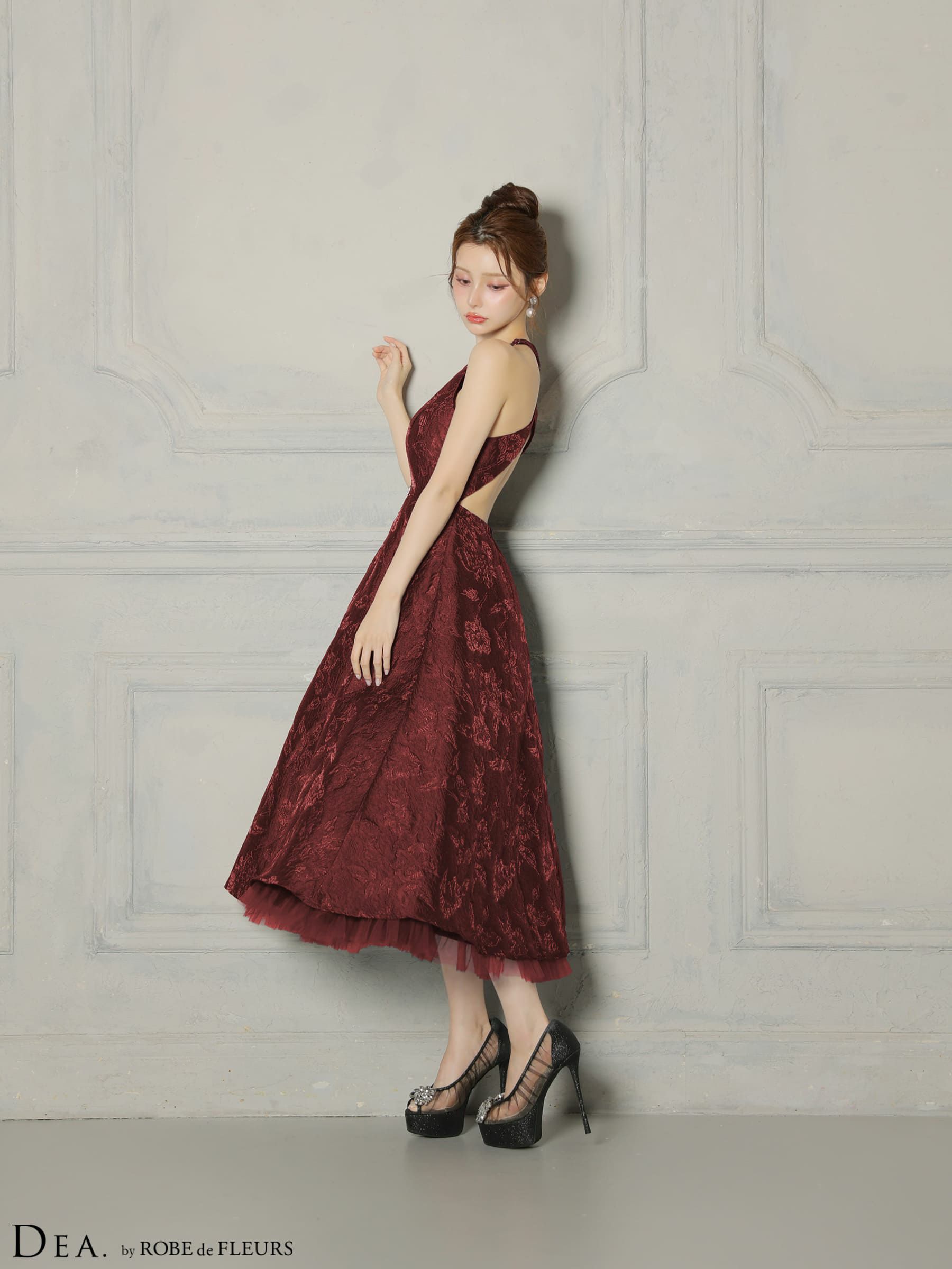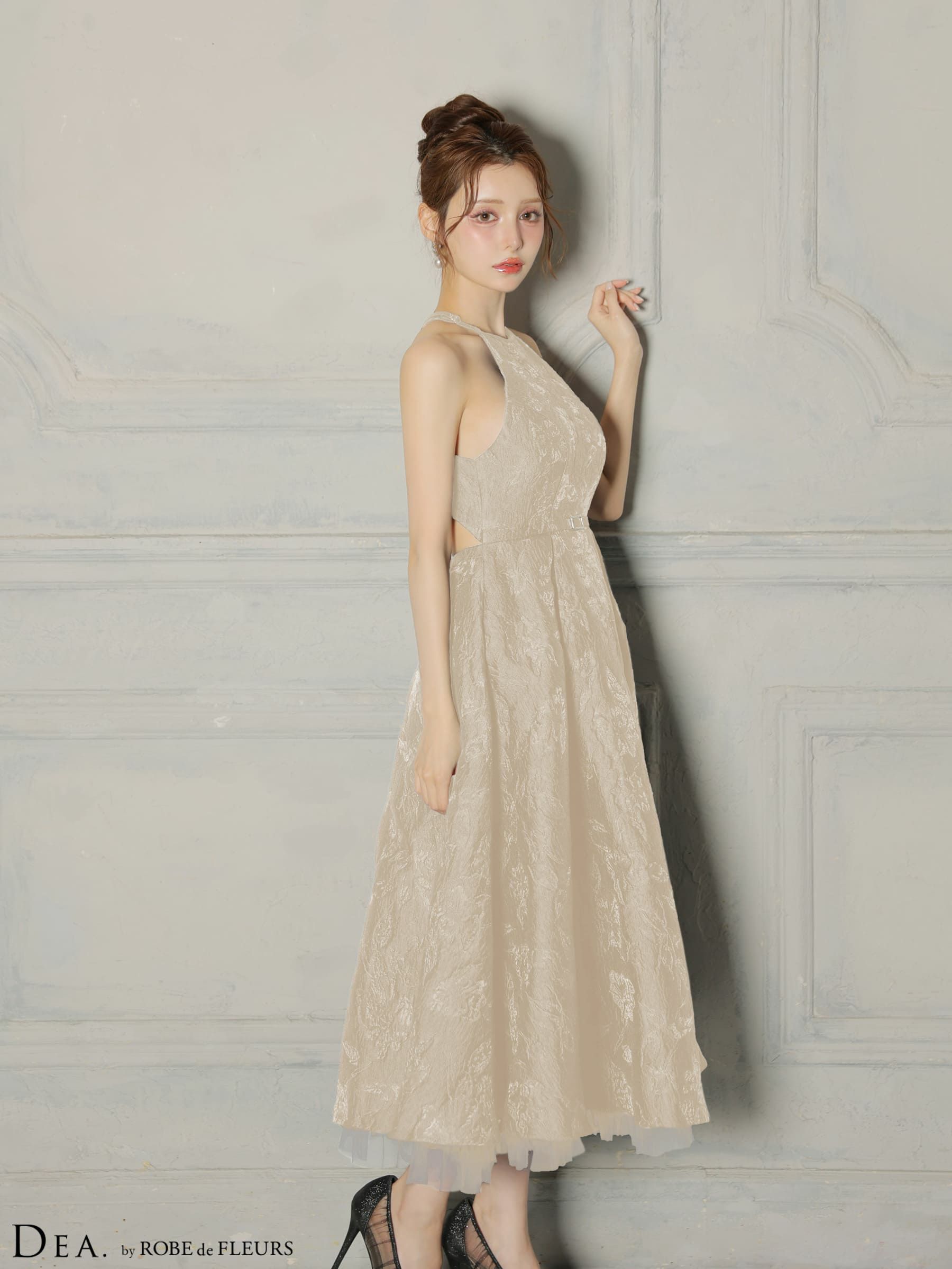 3. 【DEA.by ROBE de FLEURS/ディア】エレガント ホルターネック ウエストベルト バックオープン ラメジャガード チュール Aラインロングドレス(DE4332)