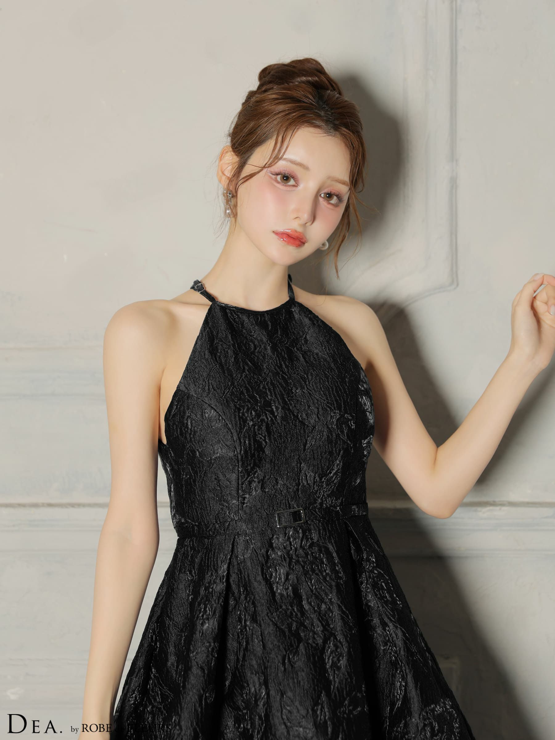 キャバドレス DEA.by ROBE de FLEURS ディア エレガント ホルターネック ウエストベルト バックオープン ラメジャガード チュール Aラインロングドレス