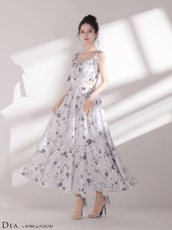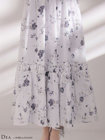 4. 【DEA.by ROBE de FLEURS/ディア】ノースリーブ サイドカット フラワーシフォン Aラインロングドレス(DE4653)