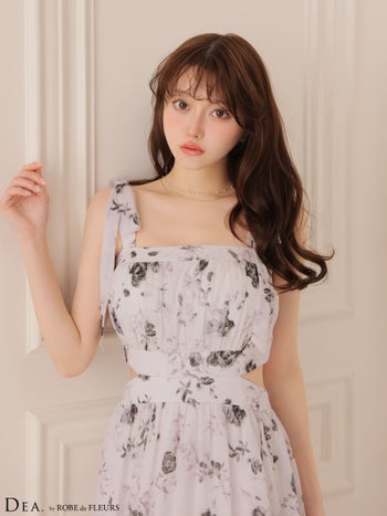 キャバドレス DEA.by ROBE de FLEURS ディア ノースリーブ サイドカット フラワーシフォン Aラインロングドレス