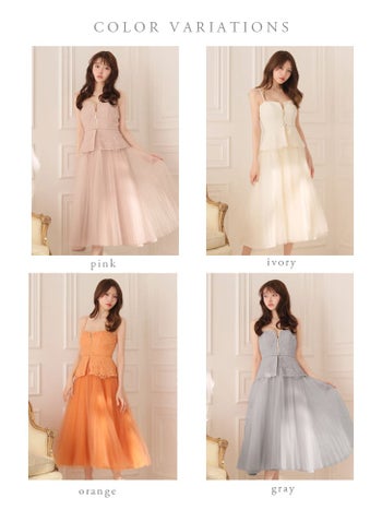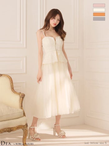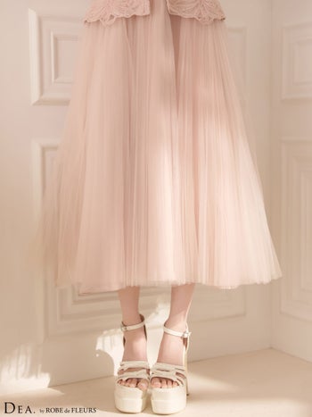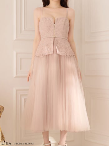 4. 【DEA.by ROBE de FLEURS/ディア】フラワーレース チュール キャミソール ベルトデザイン ペプラム Aラインロングドレス(DE4920)