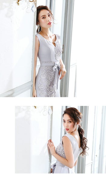 華やかなフラワーレースが上品なミディアム丈の大人ドレス♪
