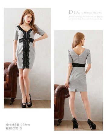 大人かわいいフェミニンな高級キャバ ワンピース♪ 【DEA.by ROBE de FLEURS/ディア】前ファスナー×ベルトデザイン タイトひざ丈ドレス[1519]