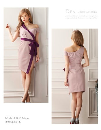 大人かわいいフェミニンな高級キャバ ワンピース♪ 【DEA.by ROBE de FLEURS/ディア】バイカラー×アシンメトリーフリルデザイン タイトミニドレス[1567]