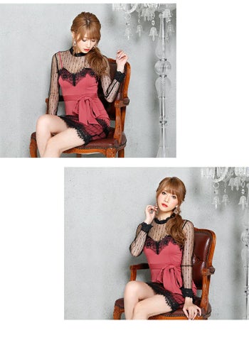 キャバドレス DEA by ROBEdeFLEURS ディア バイ ローブドフルール de1645 キャミ風ストライプチュールレースタイトミニドレス (3color)(S/M)[送料無料]