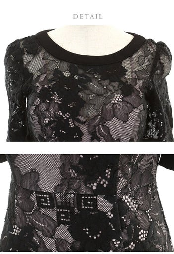 3. 【DEA.by ROBE de FLEURS/ディア】総レース×ワンピース タイトひざ丈ドレス[Lあり][ブラック×ベージュ][2052]