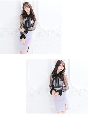 大人かわいいフェミニンな高級キャバ ワンピース♪ 【DEA.by ROBE de FLEURS/ディア】ブラウスデザイン×袖あり タイトミニドレス[Lあり][2083]
