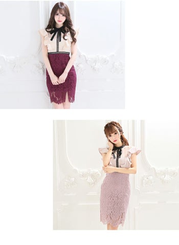 3. 【DEA.by ROBE de FLEURS/ディア】バイカラー×レースフリルスリーブ タイトミニドレス[Lあり][2166]