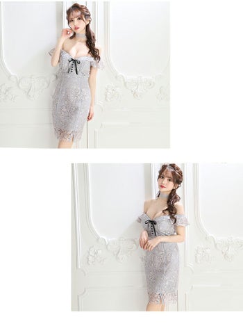 ディア バイ ローブドフルール [DEA] 2314 フェミニン 総レース オフショルダー ミ二ドレス