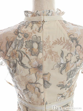3. 【DEA.by ROBE de FLEURS/ディア】エレガント 花柄レースフリル袖 タイトひざ丈ドレス(DE2584)