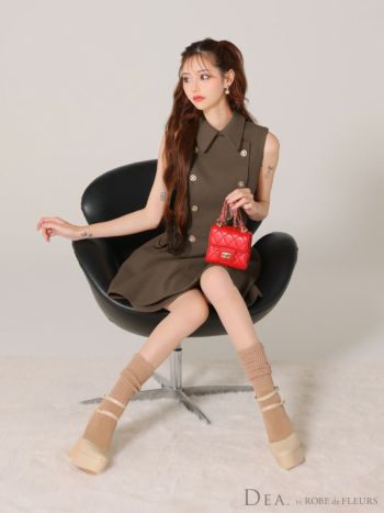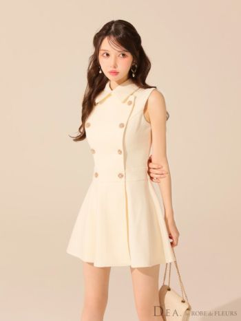 キャバドレス DEA. ROBE de FLEURS ディア ローブドフルール ノースリーブ ダブルボタン 襟付き プリーツ シンプル メルトン フレアミニドレス