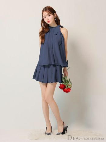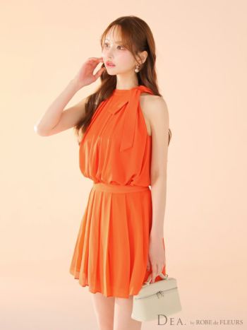 4. 【DEA.by ROBE de FLEURS/ディア】サイドリボン セットアップ エレガント サテン シフォン ノースリーブ フレアミニドレス (DE3372)